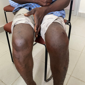 Due to the severity of the separation of the pieces of his patella, the duration of his injury, and the limited surgical capabilities in Togo, we advised him that the best course of action was to drain the fluid that had accumulated in his knee and treat the inflammation. The medical team was able to drain the large amount of fluid off of his knee and relieve his pain and immobility. At the same time, the Togolese team received training to help treat future patients.
